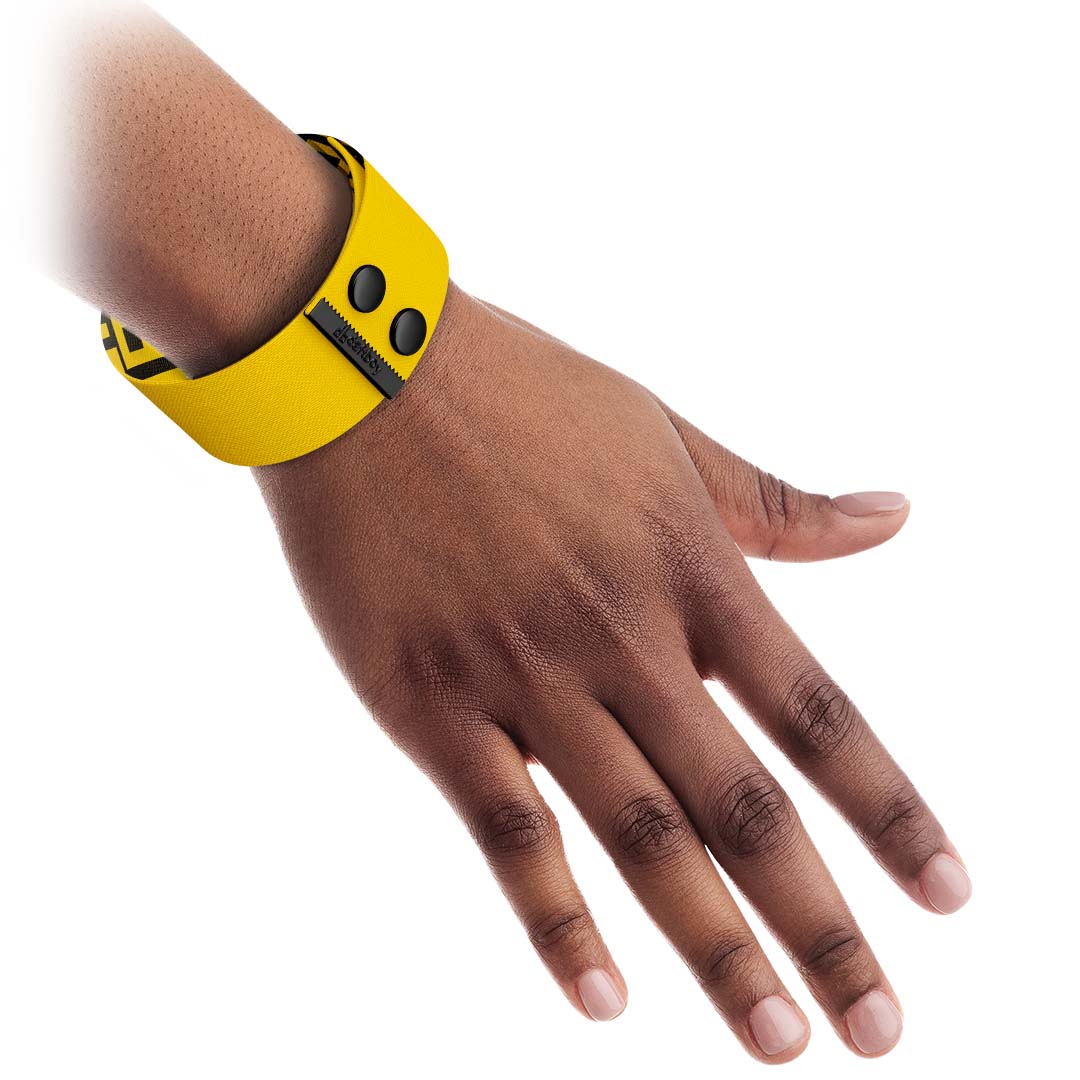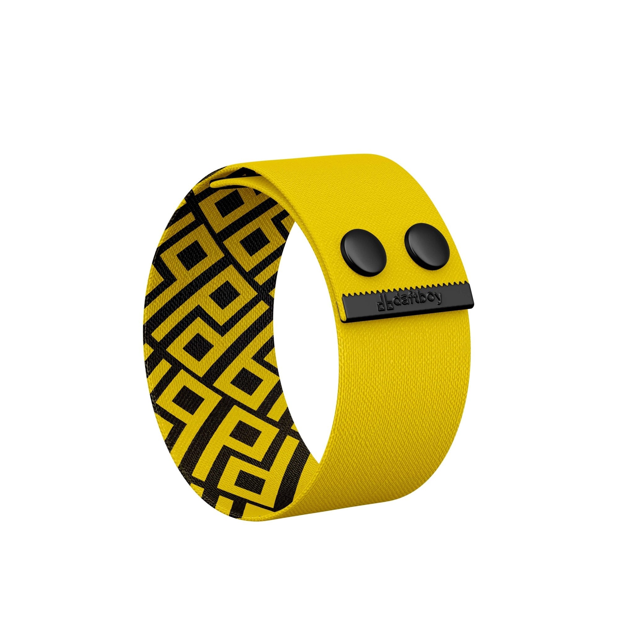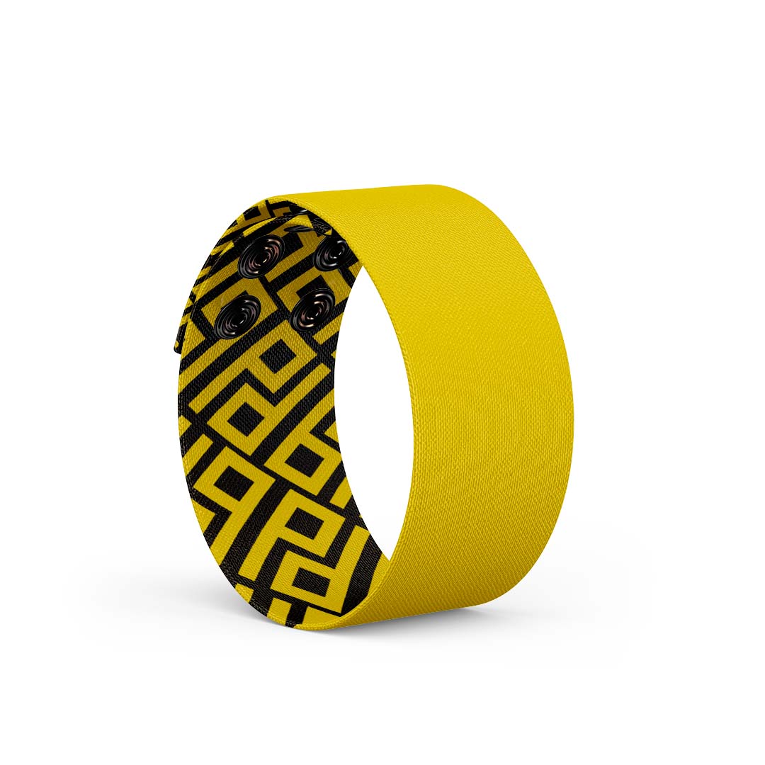 This UnisexΒ Gender-Neutral Fashion Thicc Cuff Bracelet is made fromΒ soft High-Quality Recycled Polyester strap and featuresΒ classicΒ yellow color on the outside with our signature DB pattern inside!Β