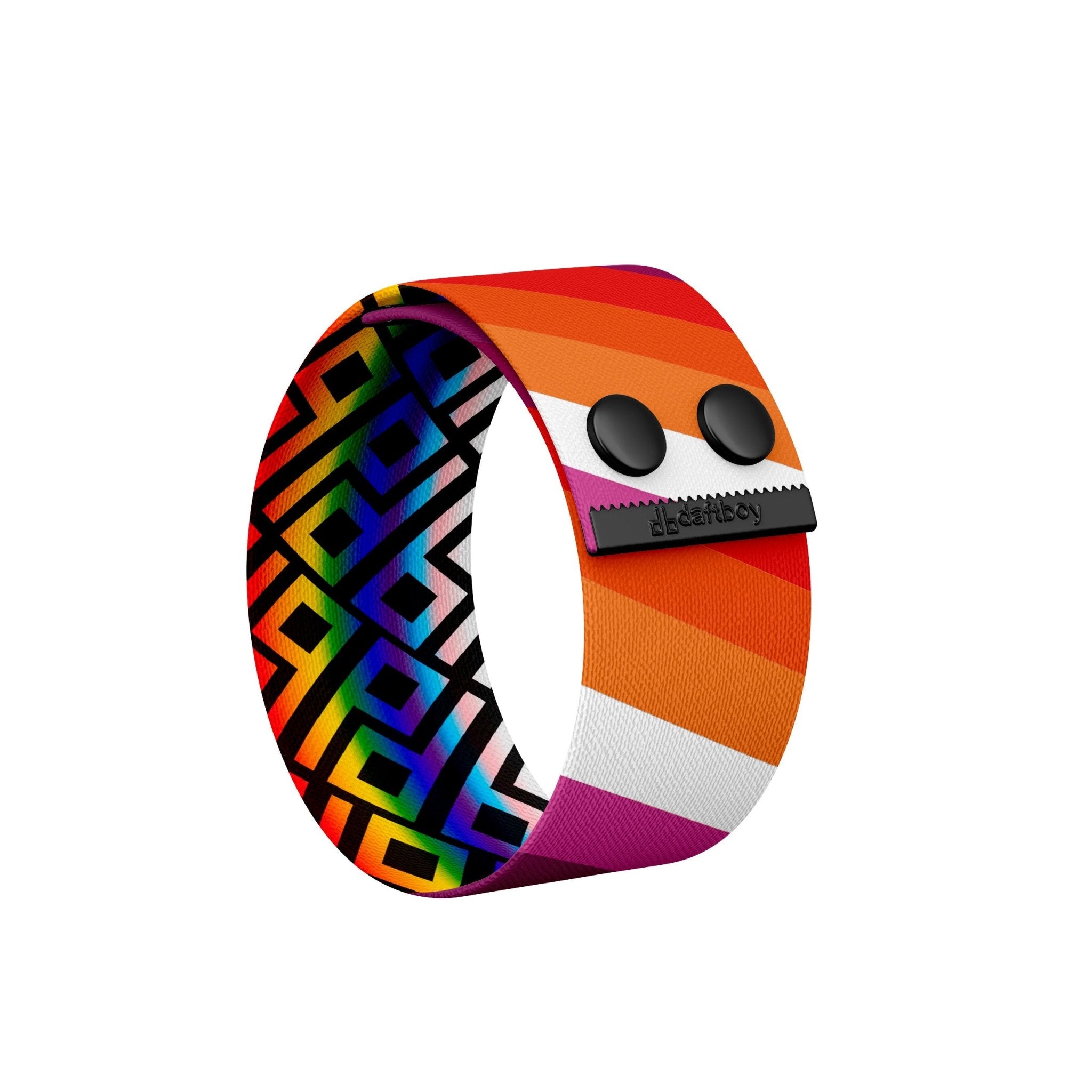 This UnisexΒ Gender-Neutral Fashion Thicc Cuff Bracelet is made fromΒ soft High-Quality Recycled Polyester strap and features Pride Asexuality Colors on the outside with our signature DB rainbow pattern inside!Β