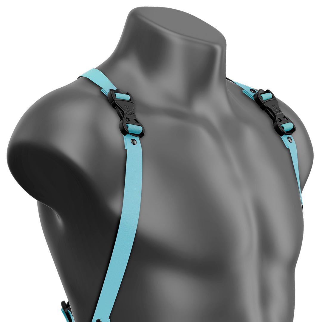 Beyond Basic Sky Blue Drop Back Vest Suspender Handmade Fashion Vegan Unisex Harness
