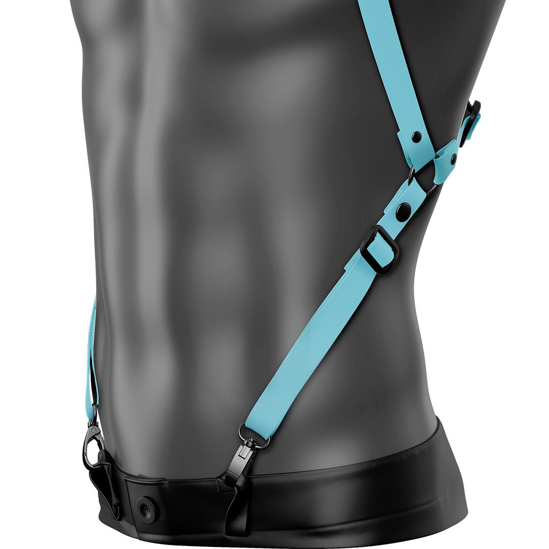 - 2 Removable Torso Straps with clips Connect To Belts, Belt Loops (As Pictured), Fan Holsters, Each other or something else down below.