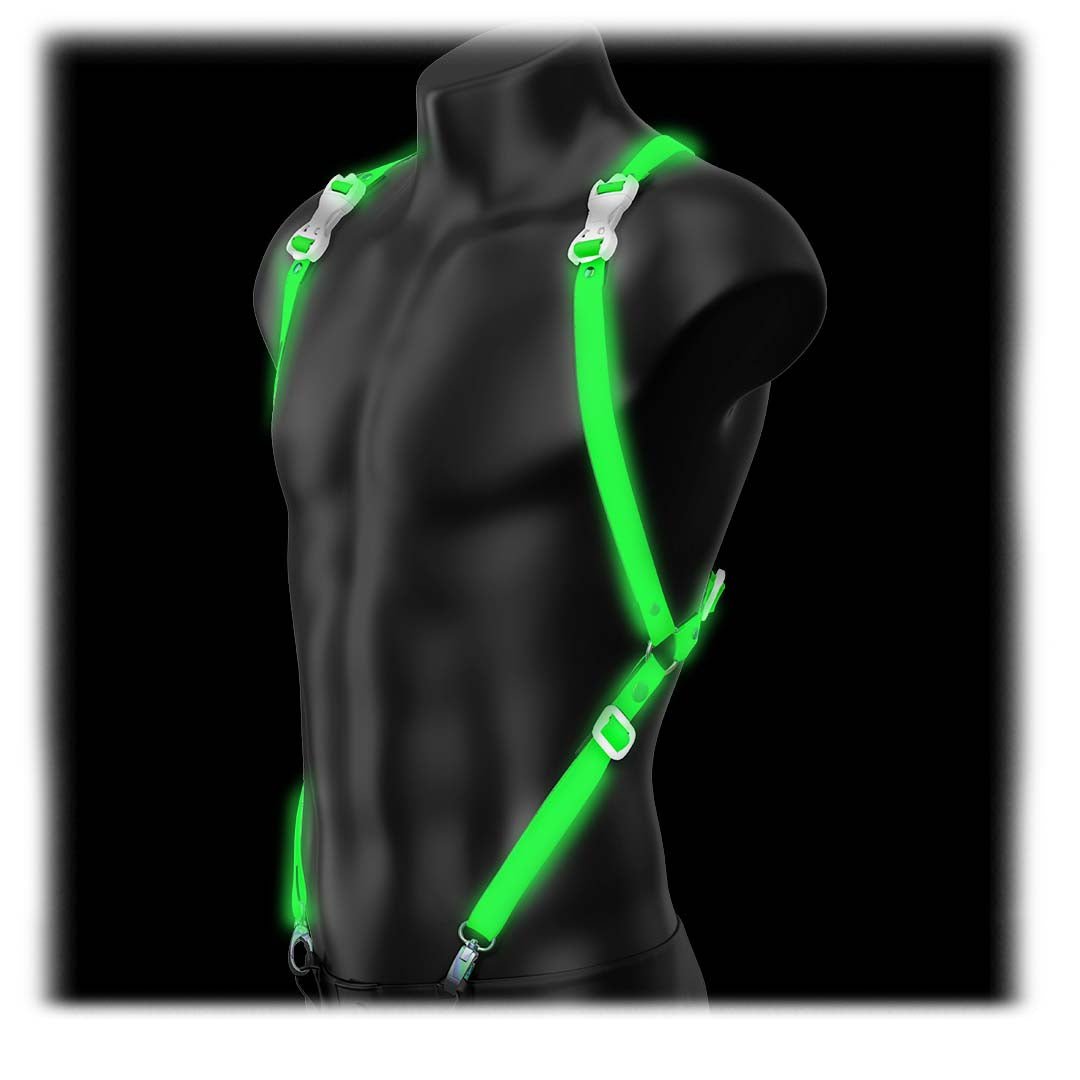 Use any concentrated light source like a mobile phone torchlight to add a magical sparkle to your night by turning your Harness into a bold piece of temporary art. Write and draw with light! Let your imagination run wild! The harness will GLOW beautifully in Black Light! Matches our Fluid Glow Fantasy Thicc Cuff and works well with our Fluid Fantasy Fan!