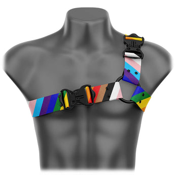 This Unisex Gender-Neutral Asymmetrical Fashion Harness features Pride Inclusion Colors on the outside and our DB rainbow pattern inside soft High-Quality Recycled Polyester strap. Yasss... Pride Inclusion Colors! It's not all the Pride Colors... But It's Close! Matches our Pride Inclusion Fan!