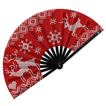 Reindeer Sweater Rave Bamboo Folding Hand Fan / Clack Fan - Large