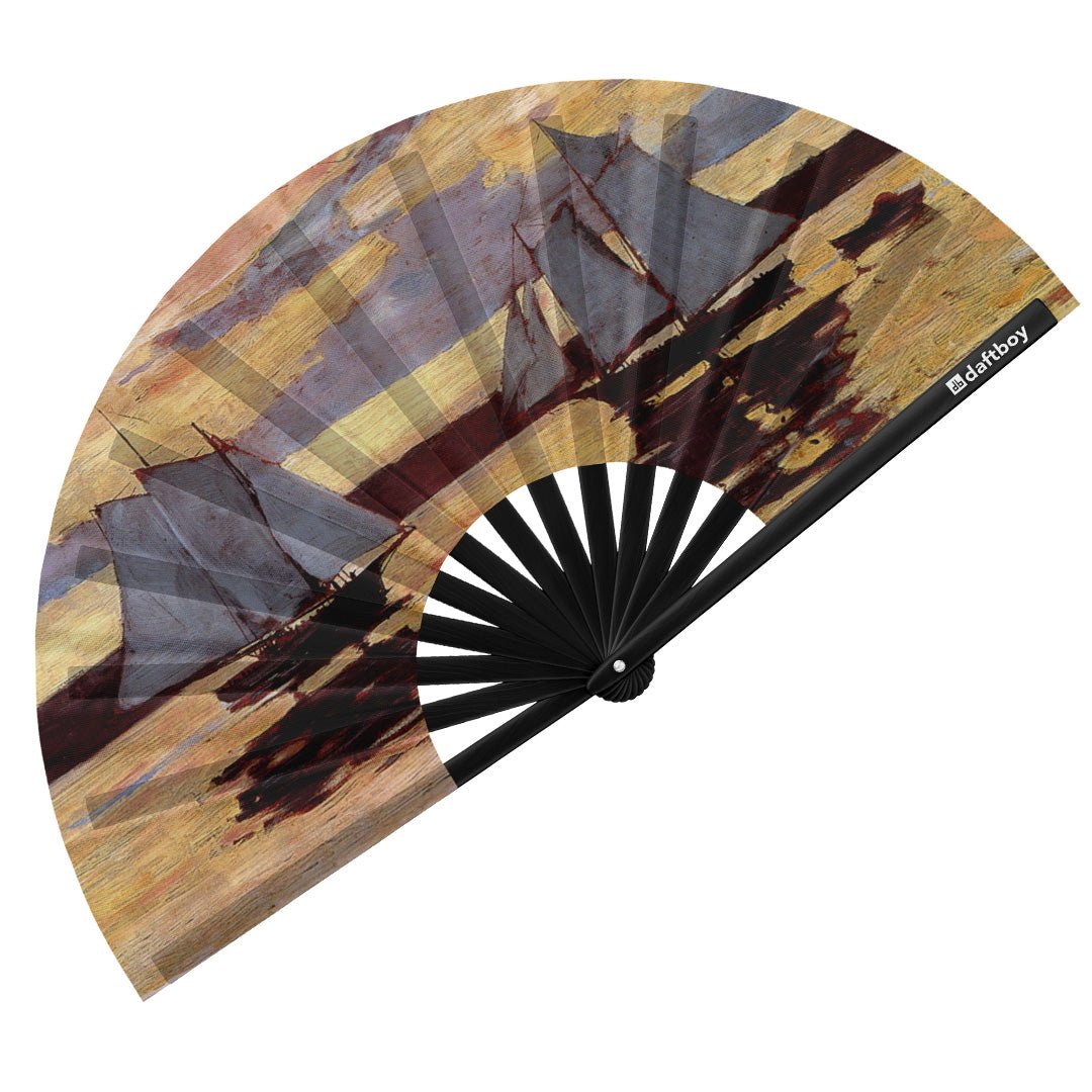 Mackerel Fleet At Dawn by Winslow Homer Rave Bamboo Folding Hand Fan / Clack Fan - Large