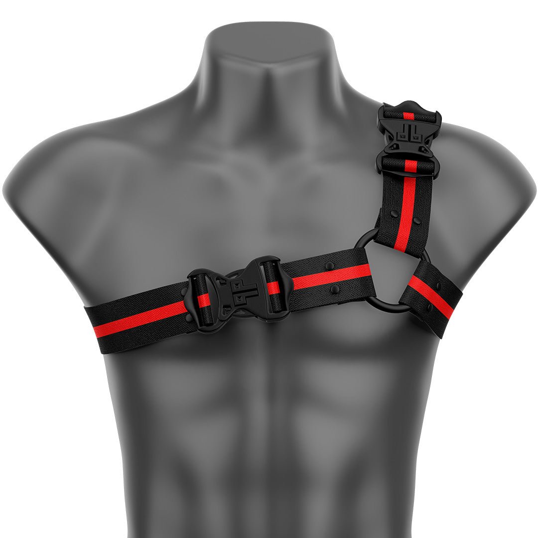 Black & Red Racer Stripe Asymmetrical Handmade Fashion Vegan Unisex Harness
