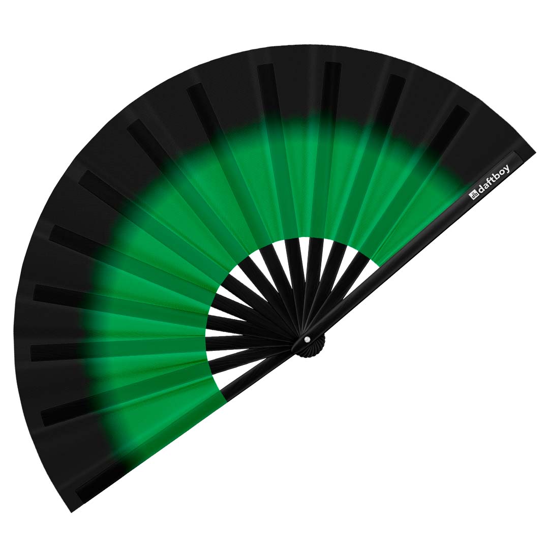 Black to Green Ombré Core Rave Bamboo Folding Hand Fan / Clack Fan - Large