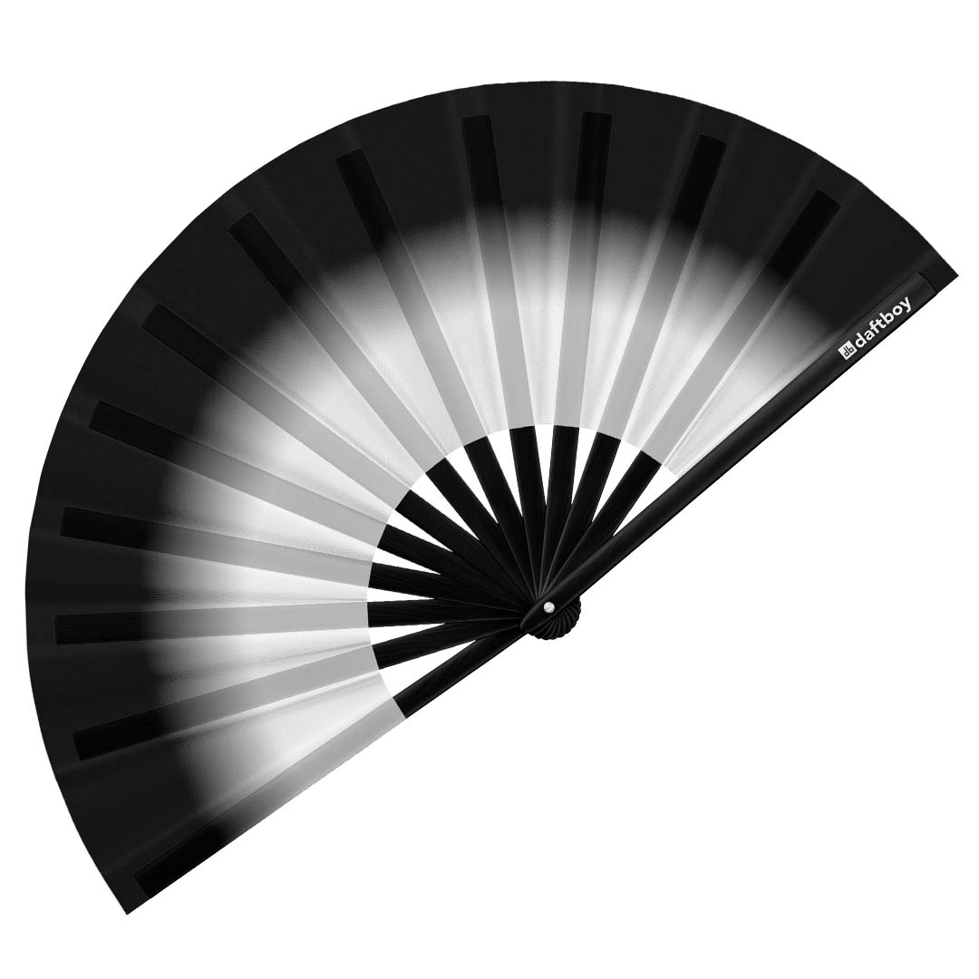 Black to White Ombré Core Rave Bamboo Folding Hand Fan / Clack Fan - Large