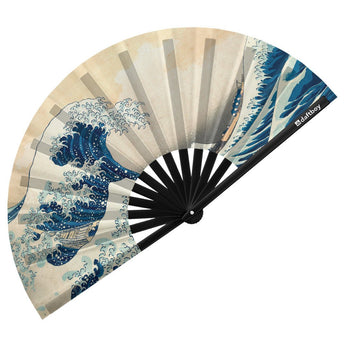 The Great Wave Off Kanagawa by Hokusai Rave Bamboo Folding Hand Fan / Clack Fan - Large