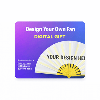 Gift amounts can be applied toward custom fan design and production. Any remaining balance can be paid at checkout.