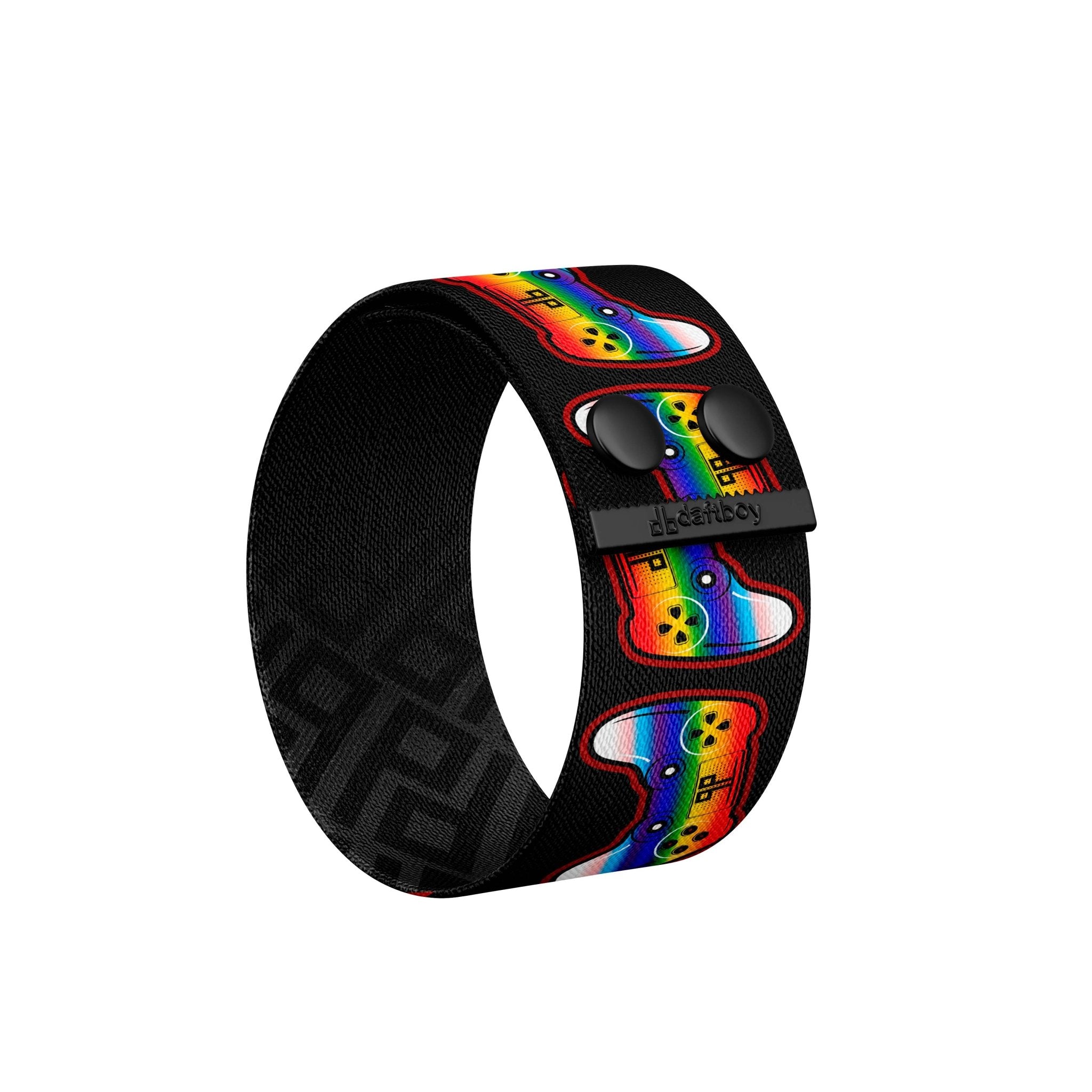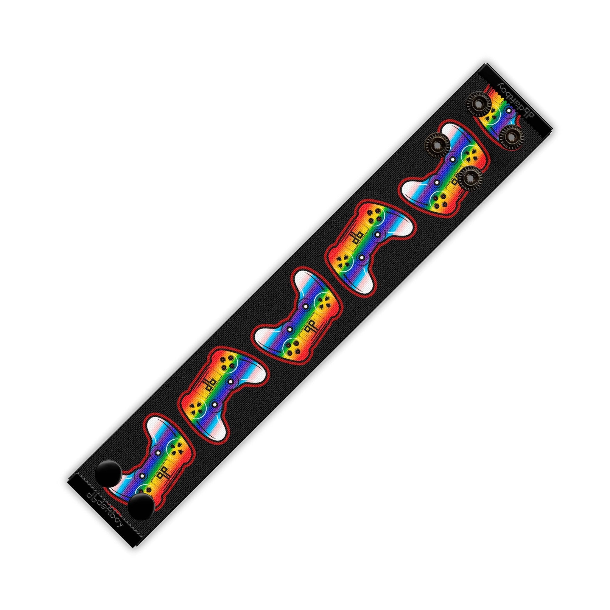 This Unisex Gender-Neutral Fashion Thicc Cuff Bracelet is made from soft High-Quality Recycled Polyester strap and features a vibrant design on the outside with our signature DB rainbow pattern inside!